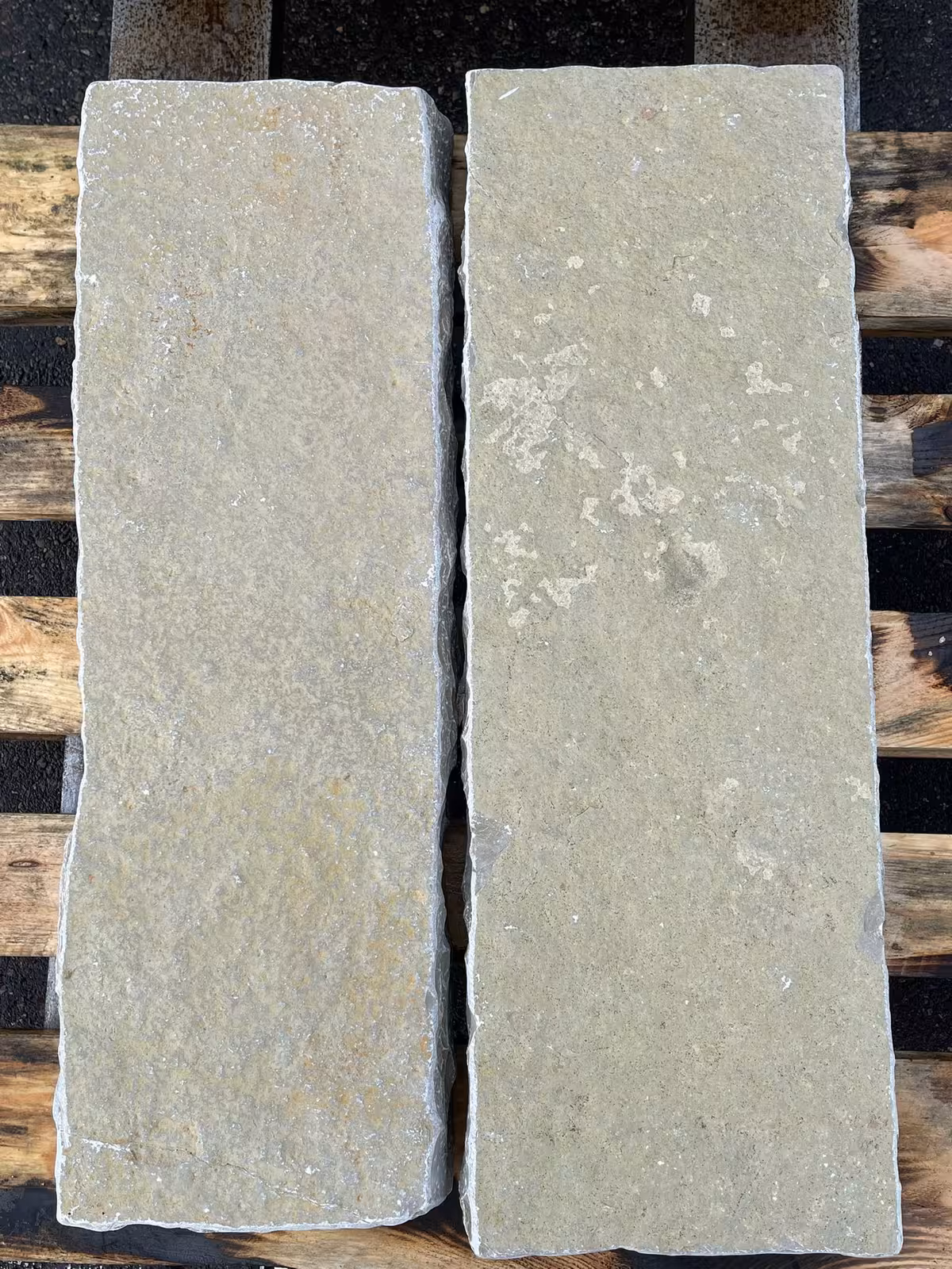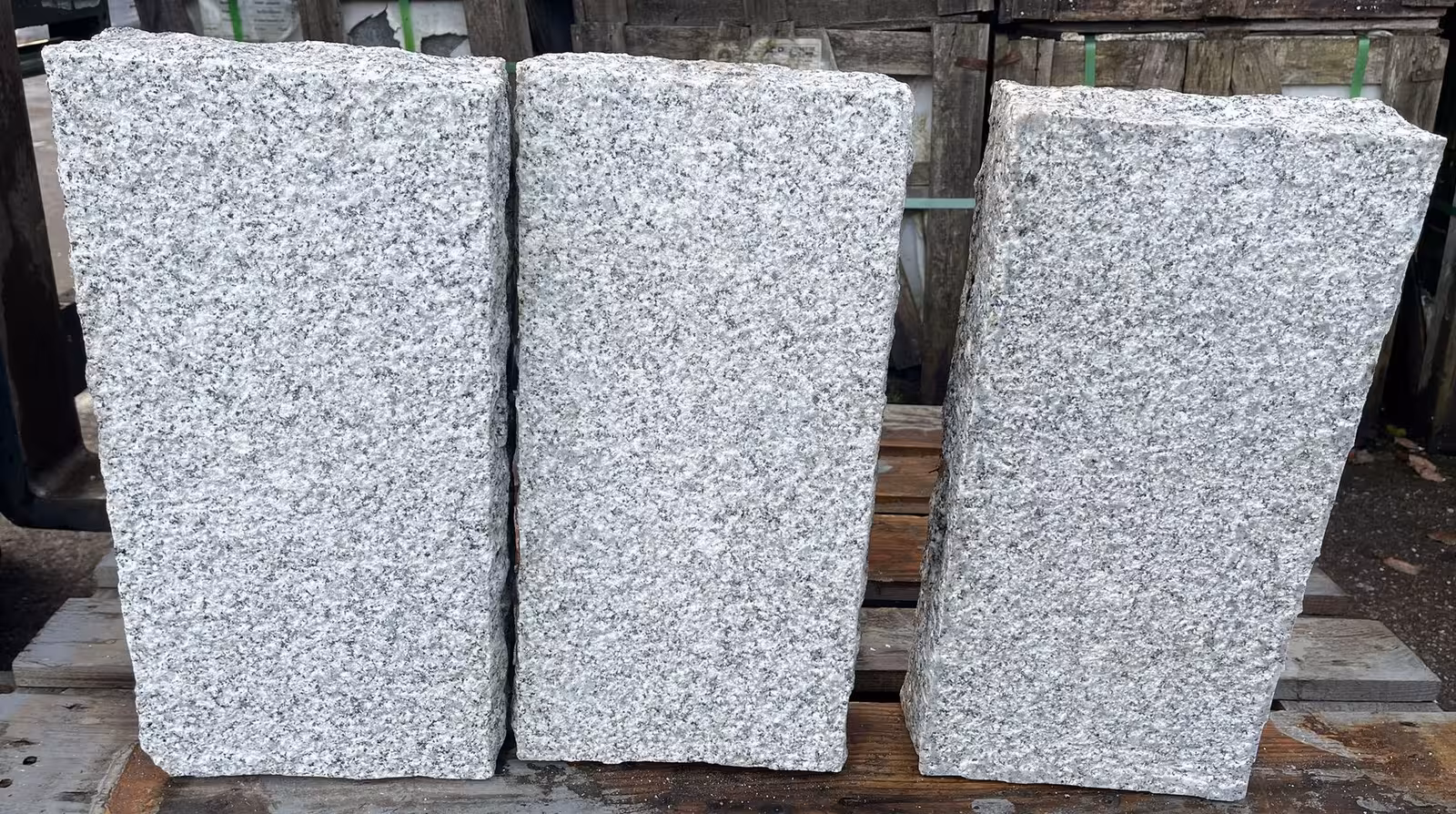 zwei gegenüberliegende Seiten eben gespalten, Längsseiten & Köpfe eben gespitzt