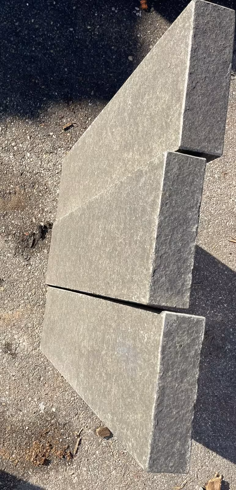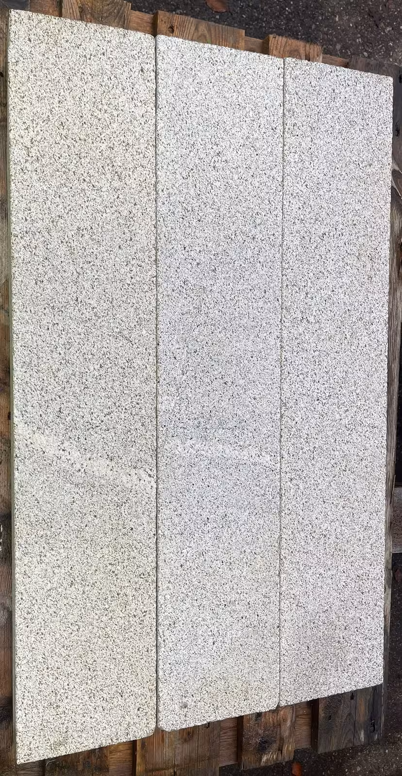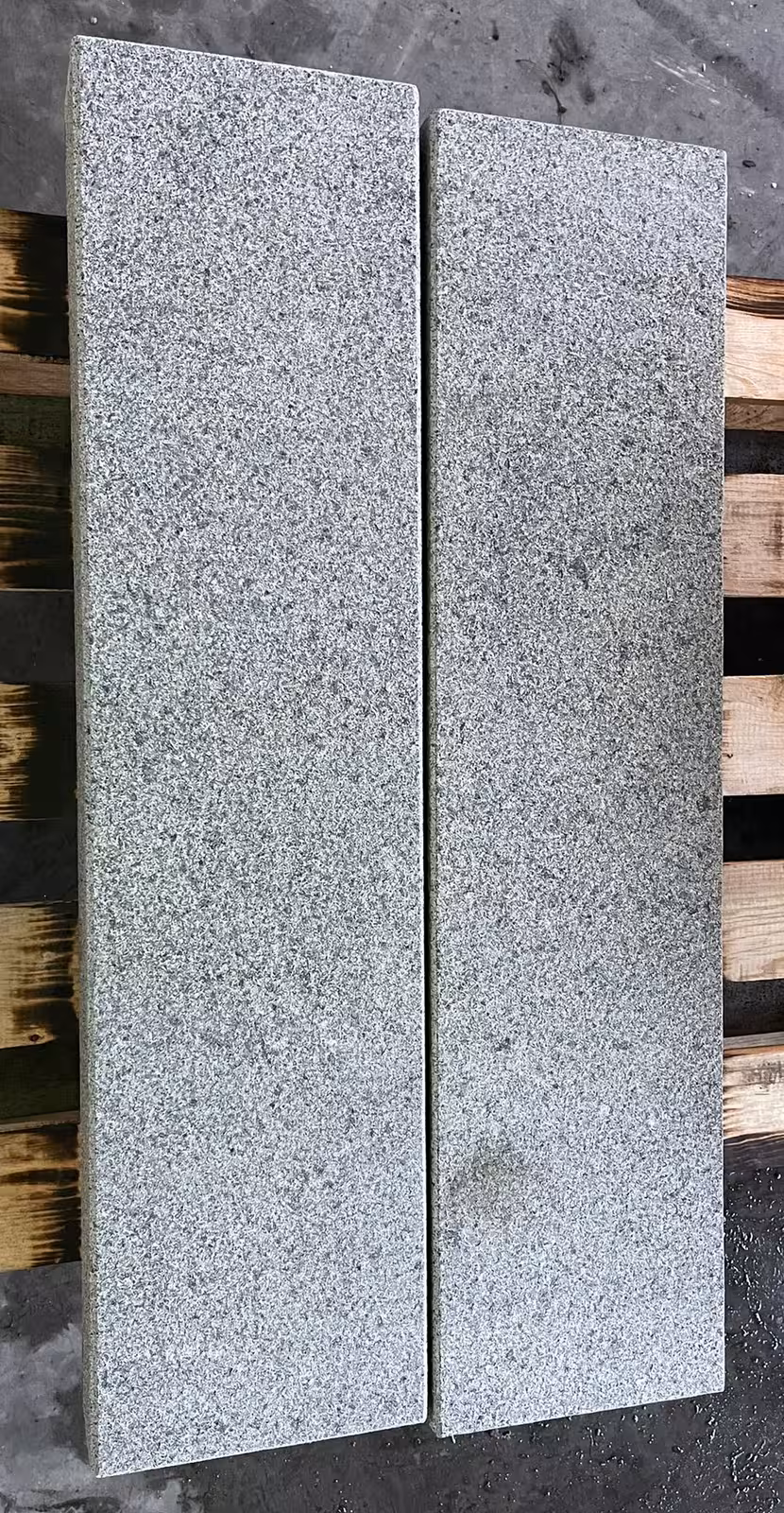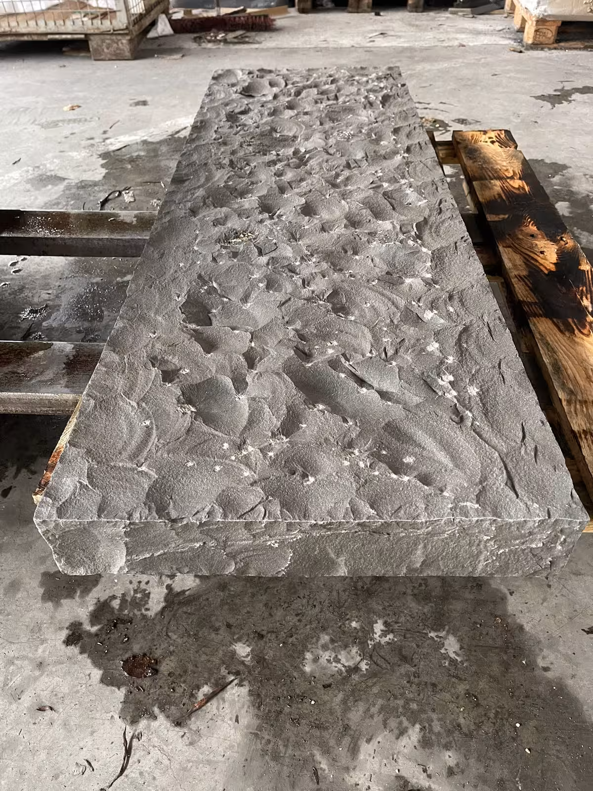 allseits gesägt, geflammt & wassergestrahlt, Kanten gefast